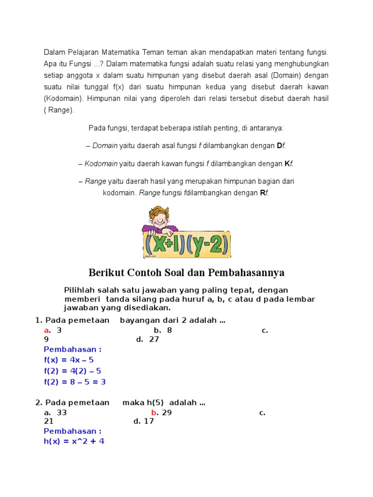 Relasi Dan Fungsi Rumus Contoh Soal Dan Jawabannya