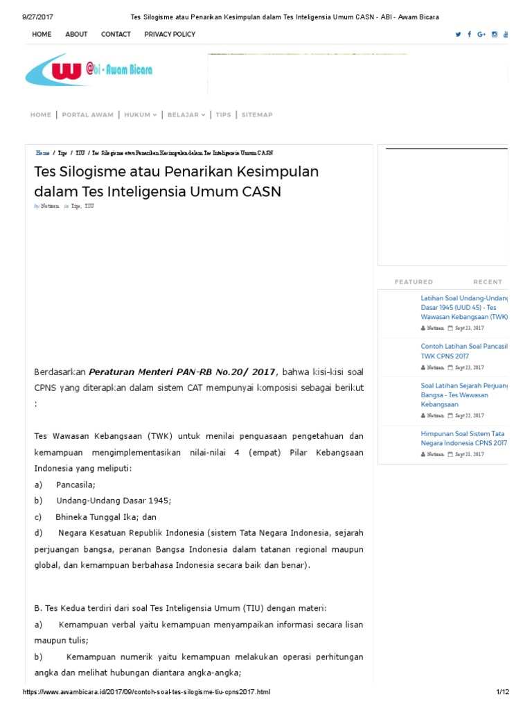 Soal Tes Cpns Tiu Dan Pembahasan - Guru Ilmu Sosial